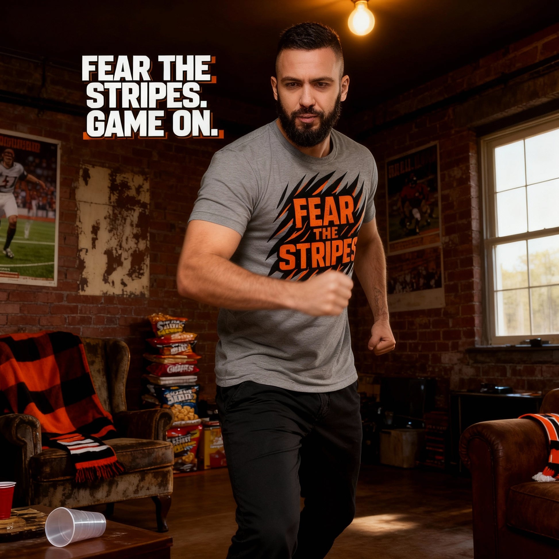 The Cincinnati football shirt you’ve been searching for is here—crafted in our ultra-soft 🥇 Elite Tri-Blend Tier for unmatched comfort and built around a bold “Fear The Stripes” design featuring dynamic, IP-safe tiger claw accents. This shirt brings together the grit, energy, and attitude of Cincinnati football culture without using any official team logos, mascots, or trademarks. Whether you're headed to a downtown tailgate, a neighborhood watch party, or repping orange and black pride around town, this feather-light tri-blend tee keeps you cool, comfortable, and game-day ready from kickoff to overtime.