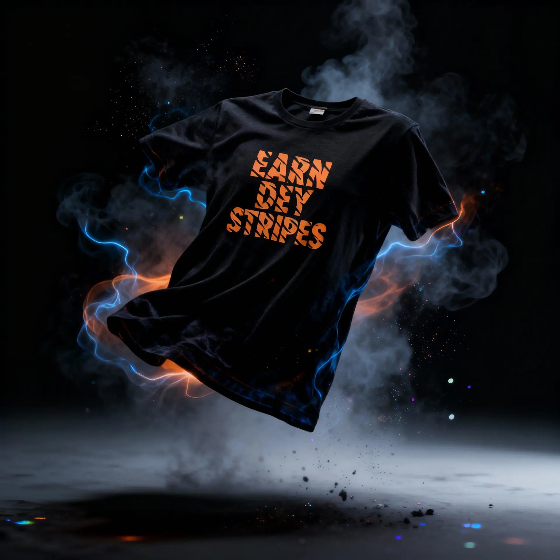 Front “Earn Dey Stripes” lettering bursts with tiger-stripe motion; the back’s striped football silhouette turns heads from the stands to the street.